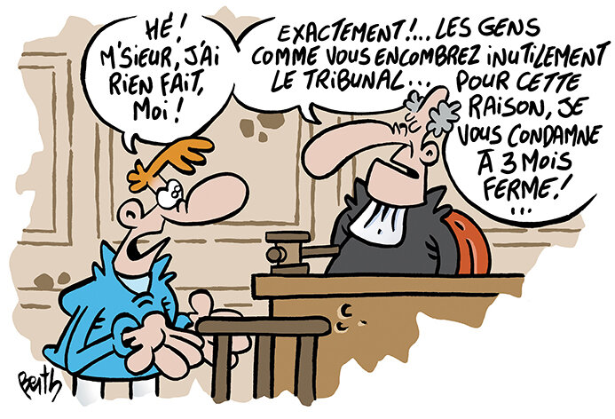 Le juge : « Où donc est votre avocat? Vous compter vous défendre seul? »