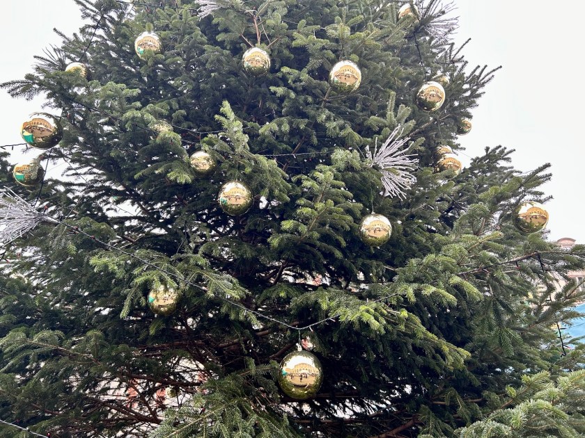 Au milieu de cette effervescence, le sapin de Noël fraichement décoré par les agents de la Ville (un boulot sympa !) :