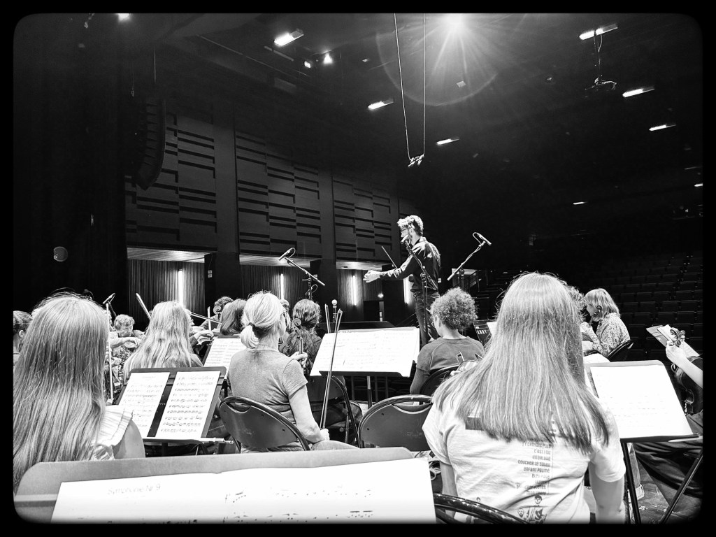 Les violoncelles au travail sous la baguette de notre chef 🙂